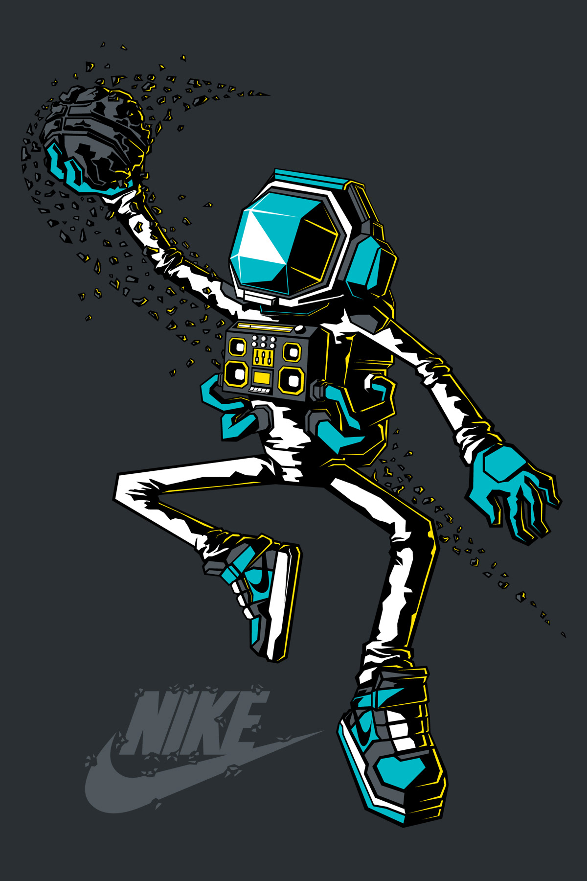 Back in 2012 i did my first t-shirt design for Nike, due to the restrictions i couldn't share this earlier. Finally i am able to show it . This one is for their spring 2014 collection. Brief was to add urban elements to an astronaut character wearing Air Force One shoes.
